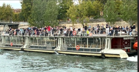 さて、同行した看護師起業家たちはオリンピックをきっかけに街の各所に整備された電動自転車の1か月パスをつかって結構遠くの名所旧跡を訪問したり、研修見学後ですが深更に至るオペラを鑑賞したり、めったに取れないフリータイムを効率的効果的にご活用でしたが、私は怠け者しました。一番近くのエッフェル塔の下まで行ったのは前回書きましたが、今回はその続き、エッフェル塔近くの船乗り場で5分後に出るという遊覧船があったので、セキュリティチェックもそこそこに飛びのりました。ちょうど1時間で約3,000円ほどでした。少し肌寒くはありましたが、頑張ってデッキで周辺景色を楽しみました。周りのお客の多く、ほとんどはベトナムの方々・・・かつての宗主国(これも死語ですか、ね)を観光するというのはどのような気持ちでしょうか?同時に、1990年代初頭、かつてインドシナとして共にフランス支配下にあったべトナムやカンボジアでの国際協力に従事した日々を思い出しました。