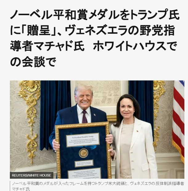 その後の動きです。強力な反政府野党指導者で、2024年大統領選挙を目指したものの政府の公職追放処分で、事実上、立候補を阻止されたマリア・コリーナ・マチャド氏、2025年ノーベル平和賞受賞者の動きがあります。マチャド氏は1月16日、アメリカのトランプ大統領と会談し、ノーベル平和賞メダルを贈呈したと語っています。そしてそのマチャド氏は、自分ではなく、もう一人の野党指導者でスペインに亡命しているエドムンド・ゴンザレス氏を大統領にと語っているそうです。