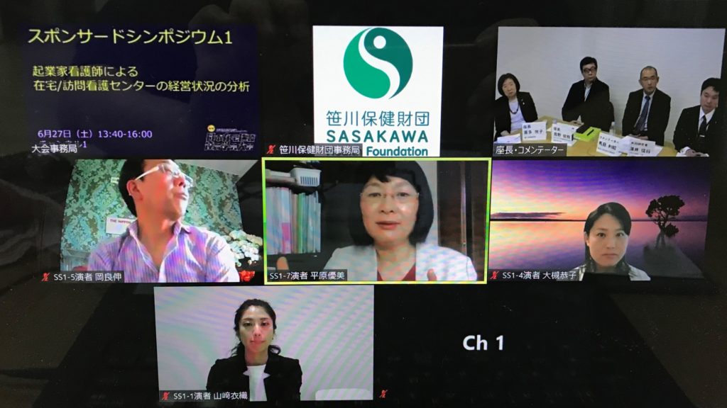 この学会は、いわゆる基礎「医学」的な治験実験の方法論や結果、また、珍しい症例の報告・・・それらで得られた成績や数字についてが主題ではなく、あくまで地域で、特に自分の家、すなわち在宅での療養や人生の最期を送る人々への多種多様な職種によるケアの実態、あり方、そこで得られた知見が発表され、意見交換がなされると申せます。私どもにとっては、どの部門に参加しても、必ず、学ぶべきことが沢山あります。とは申せ、2日間で、シンポジウム35、スポンサードシンポジウムが2、コロナ関連特別企画シンポジウムは5、基調講演4、教育講演が4、ランチョンセミナーは16、もちろん大会長講演もありましたし、「人生の最終段階を考える」市民公開講座・・・その他一般発表はポスター・・・あまりにも盛り沢山で、どこに入ろうかともたもたされた方もあったかと思います。私は、財団発表の「起業家看護師による在宅/訪問看護センターの経営状況の分析」では司会を致しましたが、その他、いくつかのシンポジウム、特別企画、優秀賞に選ばれた研修修了生を含め、現在研修中の仲間を含めますと、ポスターに採択された4演題をマーチするという忙しさでした。