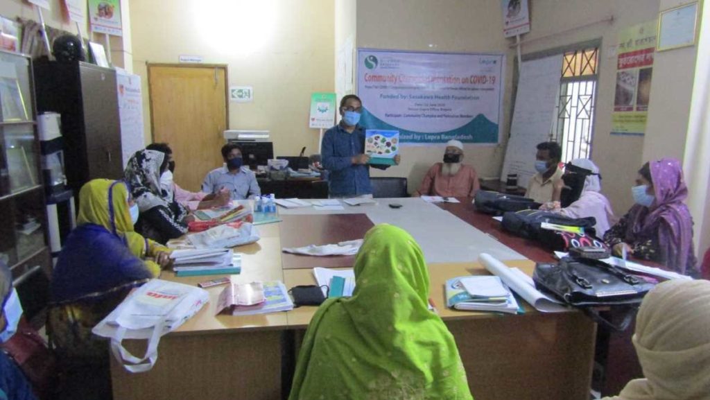 Community Champions from 12 sub-districts attend an orientation on COVID-19 at the Lepra Bangladesh office in Bogura district, Bangladesh.