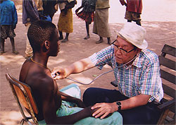 人口800名)。どちらの村も同姓同名の住民が多く、検査結果、治療の効果判定など経過観測を行うことが難しく、1983年から各個人に健康手帳を交付しています。手帳には個人番号が付けられ、ポラロイドによる個人の写真を添付、検診や治療記録、病院あるいは診療所で受診の際にも記載するようにし、個人により大切に保管され、衛生対策に役立っています。