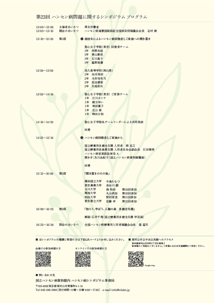 「第23回ハンセン病問題に関するシンポジウム~人権フォーラム2024」(PDF)