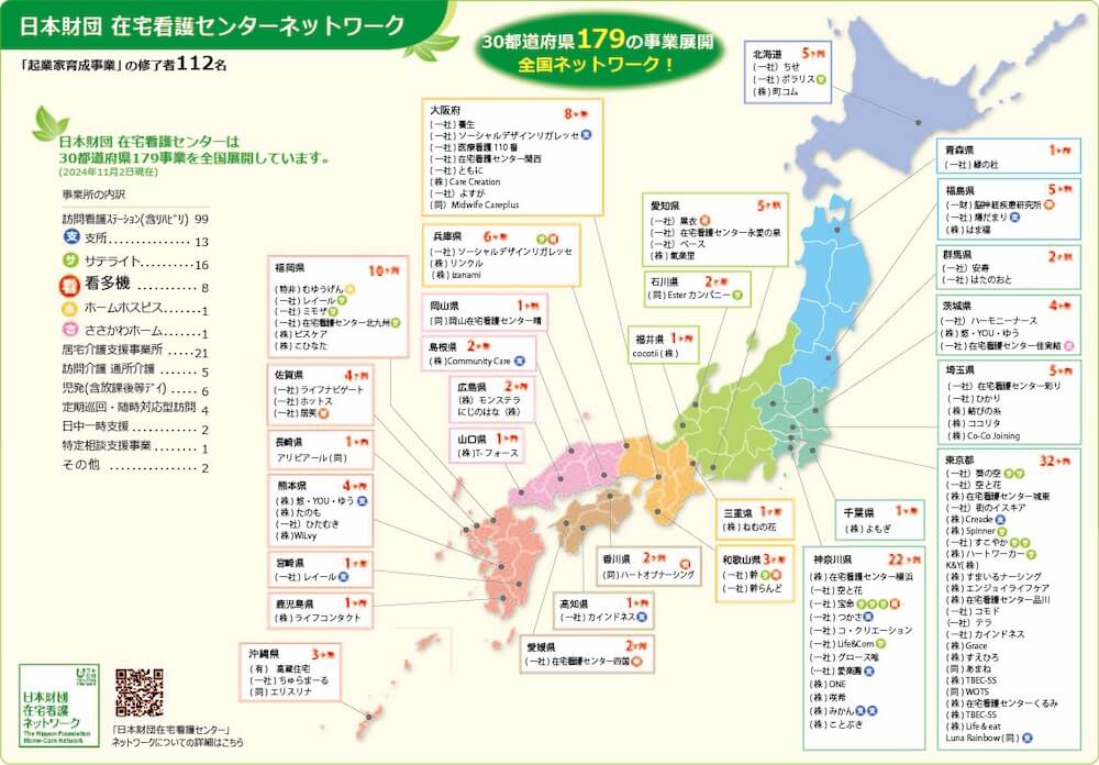 ・日本財団 在宅看護センターは30都道府県179事業を全国展開しています。(2024年11月2日現在)