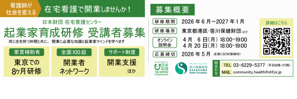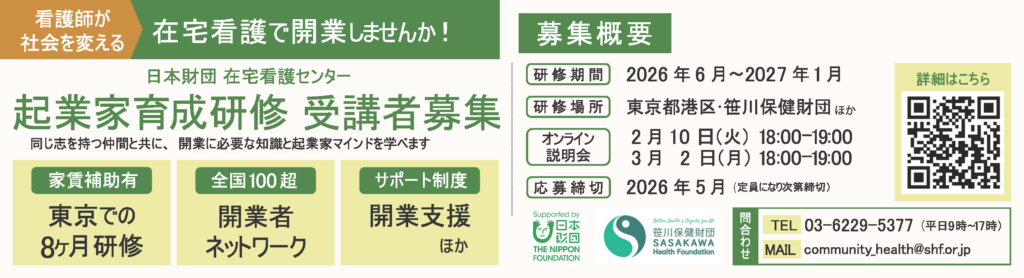 「日本財団在宅看護センター」起業家育成研修 2026年度受講者募集中!