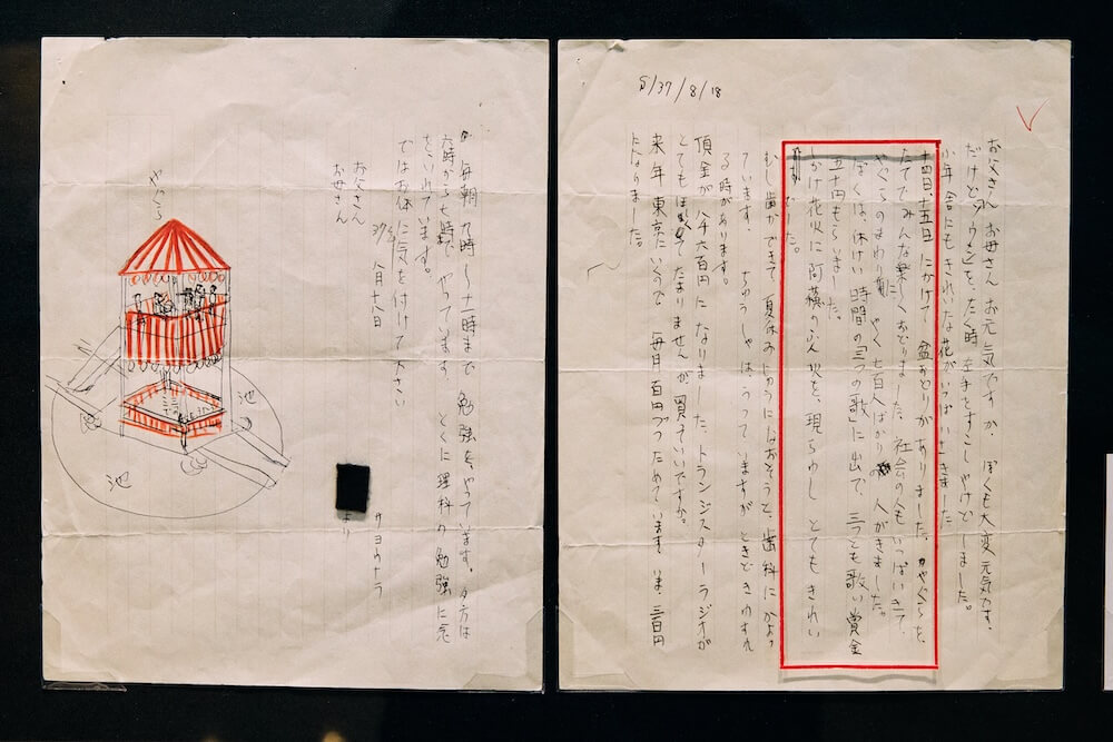 今回展示されているのは中学生時代から高校生時代に書かれた13通。勉強に励んだり、友だちと遊んだり……。一見すると、「社会」の人々と同じような暮らしを送っているようにも思えます。