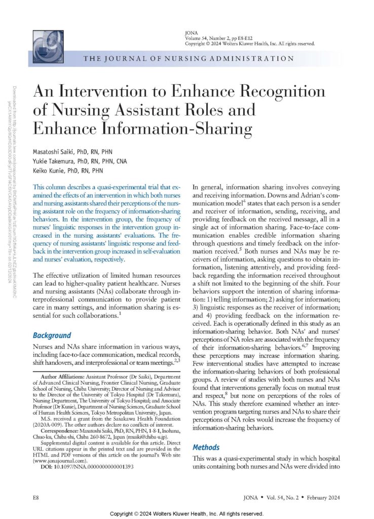 Saiki, Masatoshi PhD, RN, PHN; Takemura, Yukie PhD, RN, PHN, CNA; Kunie, Keiko PhD, RN, PHN