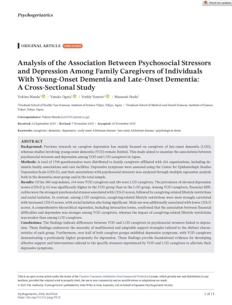 「若年性認知症者の家族介護者の精神的健康-心理社会的ストレッサーとの関連-」