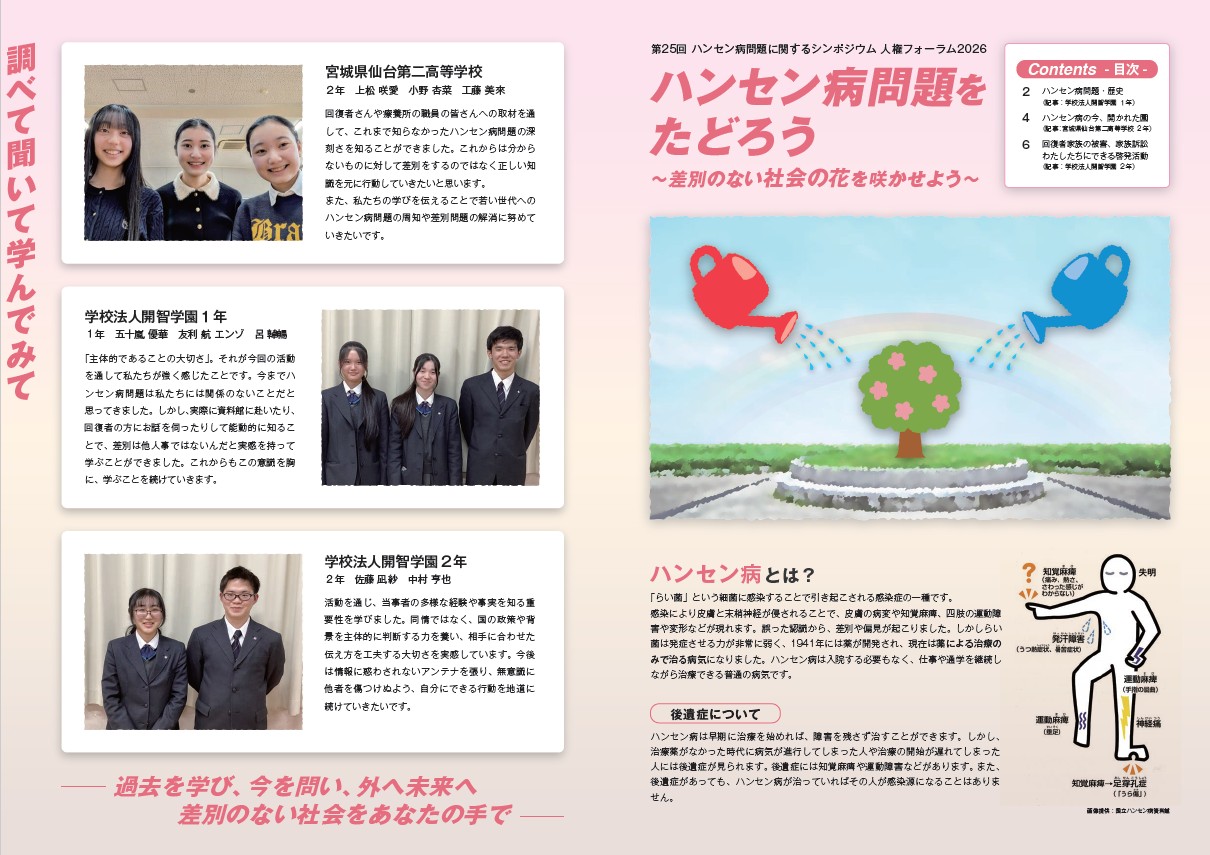 地域の人々、地方公共団体、学校、企業等を対象にハンセン病問題への理解を促し、深める活動を行います。