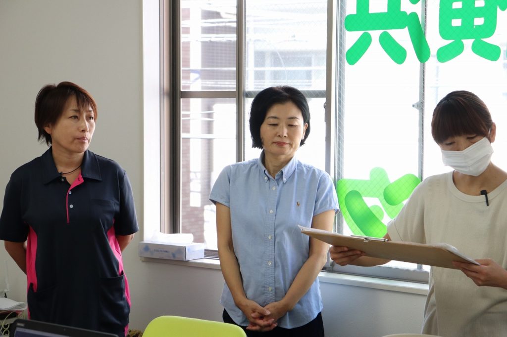 「新しくST(言語聴覚士)さんも仲間に加わってもらうことになったんです」と紹介して下さった山本さん。ケアマネ・ST・OP・OT・事務職と多職種連携も進んでいました。